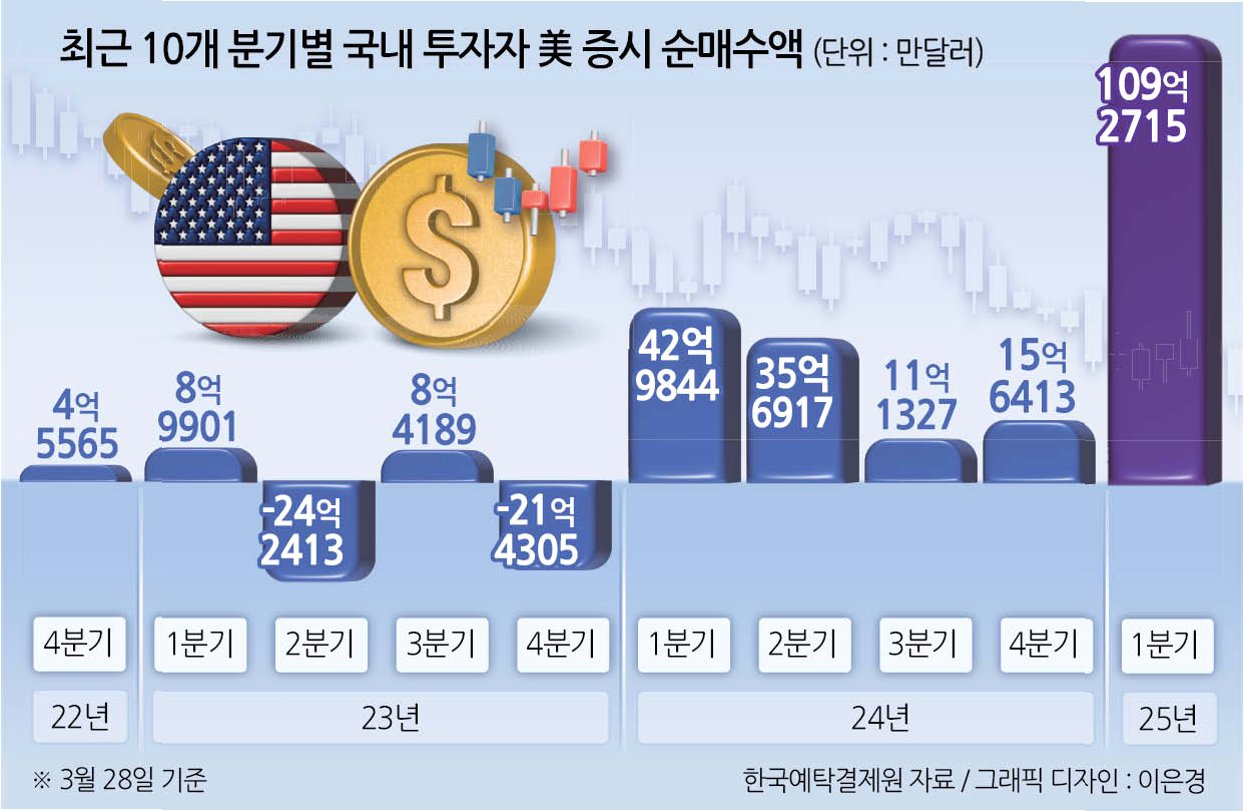 고환율 상황에서도 서학개미들은 해외 증시 투자를 멈추지 않았습니다. 한국예탁결제원 자료에 따르면, 미국 주식 보관액은 2022년 442억 달러에서 2023년 680억 달러로 증가했고, 2024년에는 1,121억 달러로 폭발적으로 늘었습니다. 작년 말에는 이보다 더 증가한 1,636억 달러로 집계되었습니다. 이는 고환율에도 불구하고 해외 투자를 지속하려는 투자자들의 강한 의지를 보여주는 지표입니다.
