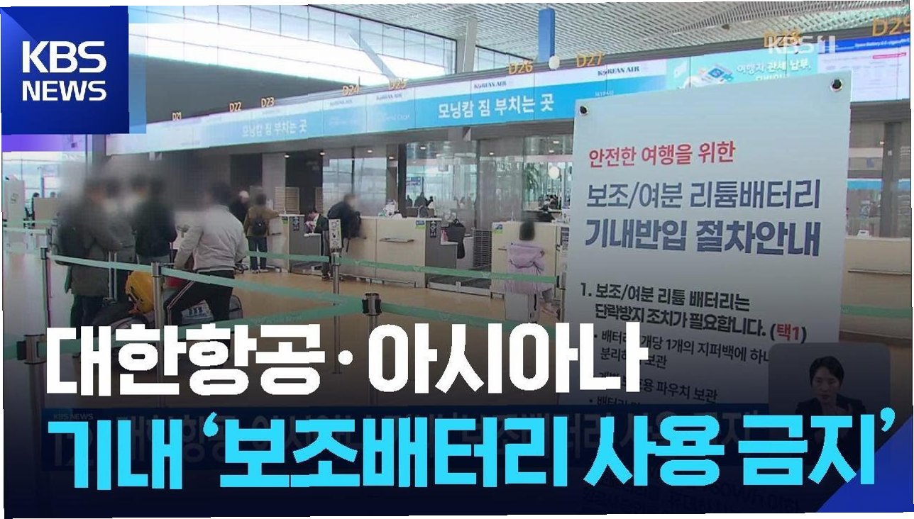 이제 대한항공, 아시아나항공 등 한진그룹 계열 항공사에서는 26일부터 기내 보조배터리 사용이 전면 금지됩니다. 이는 전자기기 충전을 포함한 모든 사용 행위에 해당됩니다. 다만, 허용된 용량과 개수 제한을 지키고 단락 방지 조치를 취하면 보조배터리 반입 자체는 가능합니다. 최근 잇따른 화재 사고로 인해 안전이 강화된 조치이며, 항공사들은 홈페이지와 앱을 통해 상세 내용을 안내할 예정입니다. 안전하고 즐거운 여행을 위해 규정을 미리 확인하고 협조해주시길 바랍니다.