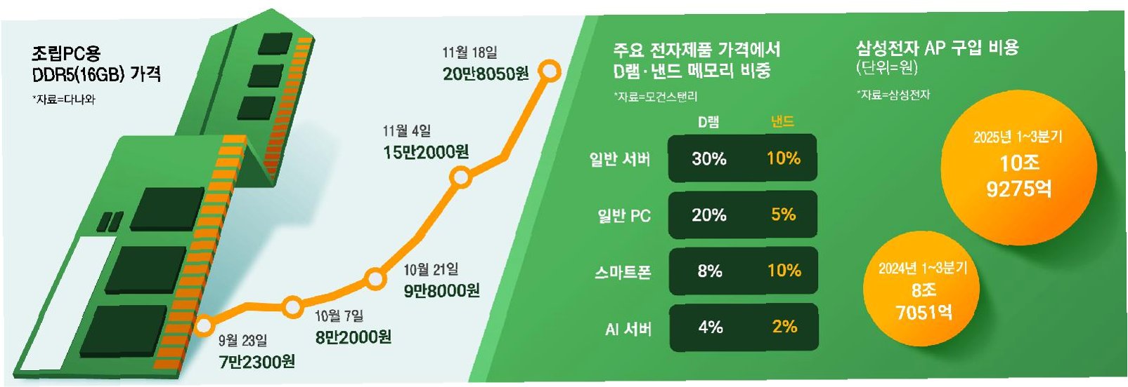 AI 열풍과 공급 부족, 메모리 반도체 가격의 5배 폭등